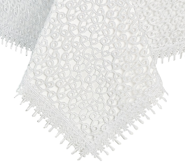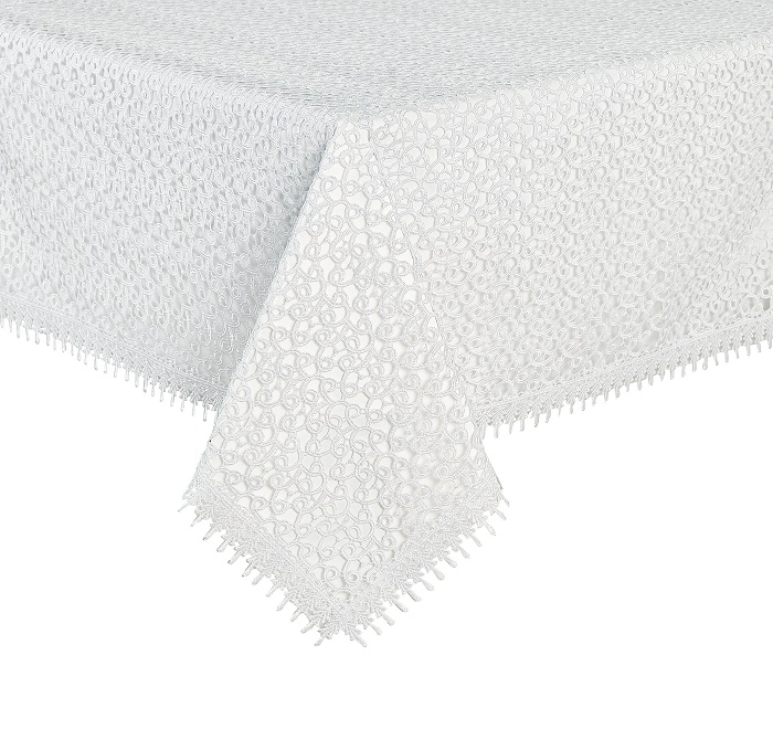 Obrus Fiona został w całości wykonany z efektownej gipiury przypominającej słynną gipiurę angielkę. Poliestrowe włókna, z których go wykonano zapewniają łatwość w jego utrzymaniu, gdyż można go wielokrotnie prać, bardzo szybko schnie a co najważniejsze nie wymaga prasowania.